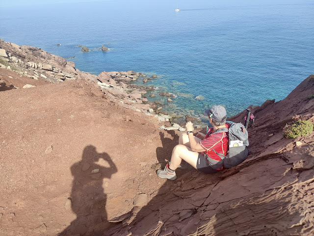 Más subidas y bajadas, nos dejan en la paradisiaca cala de Calderer. Nos alojamos a la sombra de un cobertizo... y ¡hale, al agua! Esta es una de las más tranquilas y salvajes del camino, pues, como decía, acercarse hasta aquí no lo hace cualquiera.