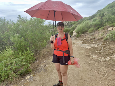 Aunque sigue lloviendo ligeramente, nos ponemos las capas impermeables y comenzamos a caminar. Los primeros kilómetros los hacemos entre urbanizaciones, incluyendo un despiste nuestro. Tengo que decir que, a partir de aquí, el camino gira para transitar por el sur de la isla.